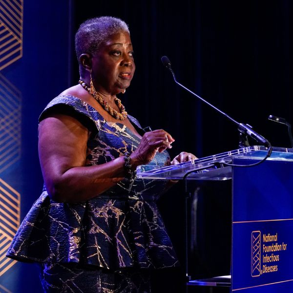 In recognition of her groundbreaking work as a visionary physician-scientist and humanitarian whose contributions have helped change the course of TB and HIV/AIDS, NFID honored Anne E. Goldfeld, MD. Her fusion of scientific discovery, clinical care, and humanitarian action has driven breakthroughs in treatment and expanded access to lifesaving care. A visionary leader at the intersection of science and service, in parallel with her work as a physician-scientist at Harvard Medical School, Goldfeld co-founded transformative treatment and research programs in Cambodia for TB, drug-resistant TB, and HIV—and later for drug-resistant TB in Ethiopia—bringing care to some of the world’s most underserved populations. Applying her scientific expertise to TB and HIV, her work has provided a new understanding behind the immune response to TB and TB/HIV co-infection and changed global treatment guidelines for HIV/TB treatment, which is estimated to have saved more than 150,000 lives annually over the last 14 years.